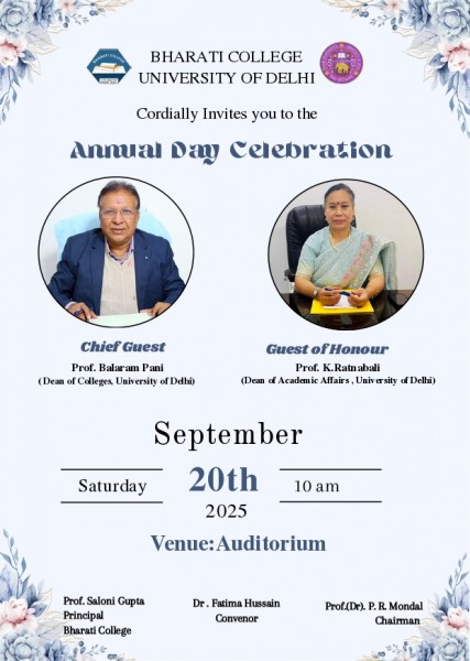 The Governing Body, Staff and Students of Bharati College, University of Delhi Cordially Invite You To The Annual Day Celebrations and Prize Distribution Ceremony