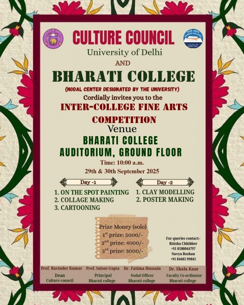 Cultural Council University of Delhi & Bharati College (Nodal center designated by the University) Cordially invites you to Inter-College Fine Arts Competition