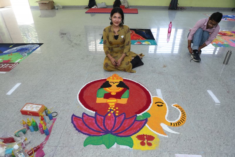 Inter-College Fine Arts Rangoli Making Competition by Cultural Council University of Delhi & Bharati College (Nodal center designated by the Unive