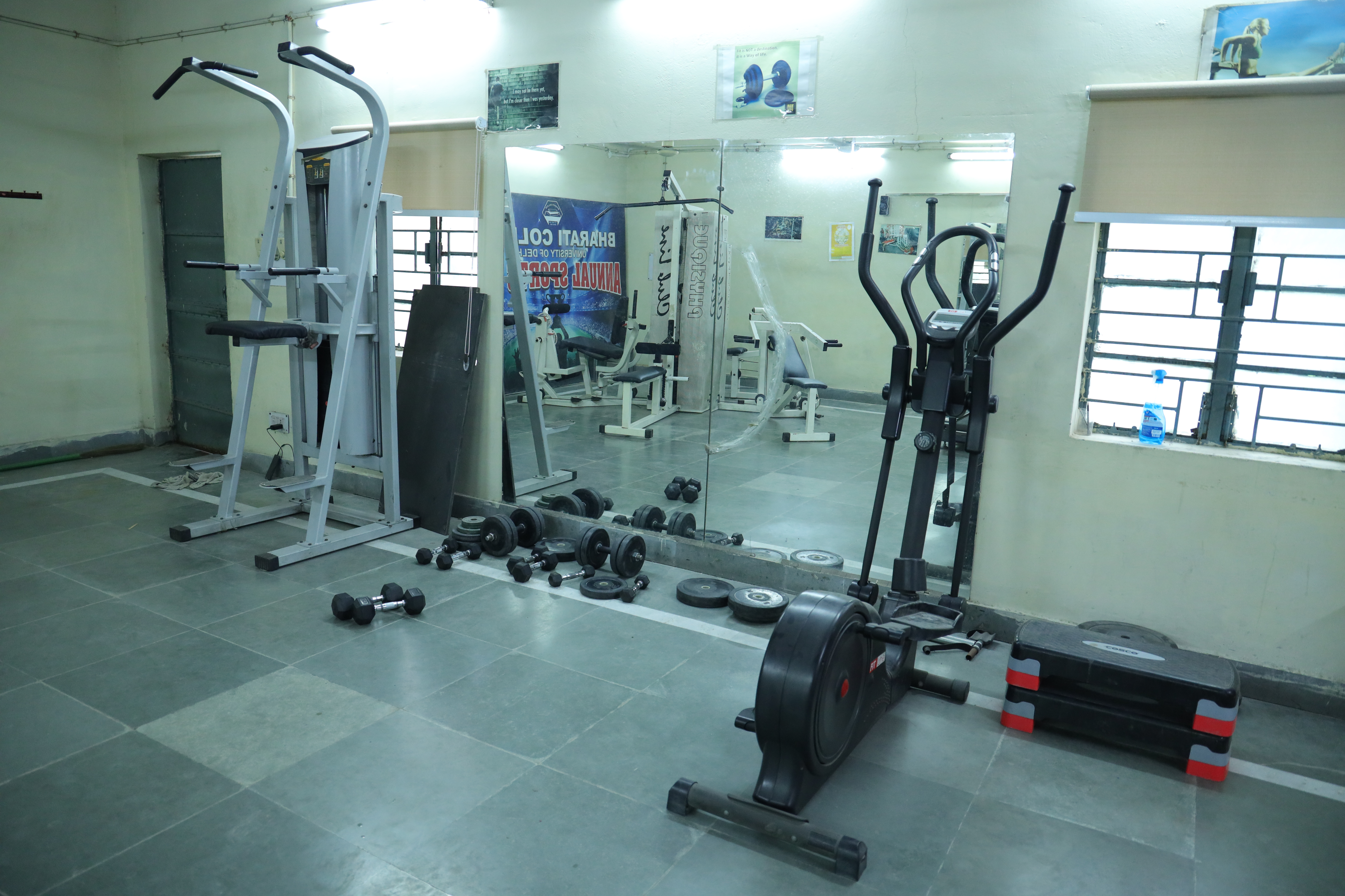 Recognizing the importance of physical fitness for overall development, Bharati College launched its gymnasium in 2011. It's continually updated with modern equipment like treadmills, and other modern equipment’s. Both students and teaching and non-teaching staff can access these facilities at a nominal charge. The facilities also include our own Yoga Centre, promoting a healthy campus community. A spacious central lawn and sports ground encourage outdoor games and recreational activities among students and teaching and non-teaching staff.