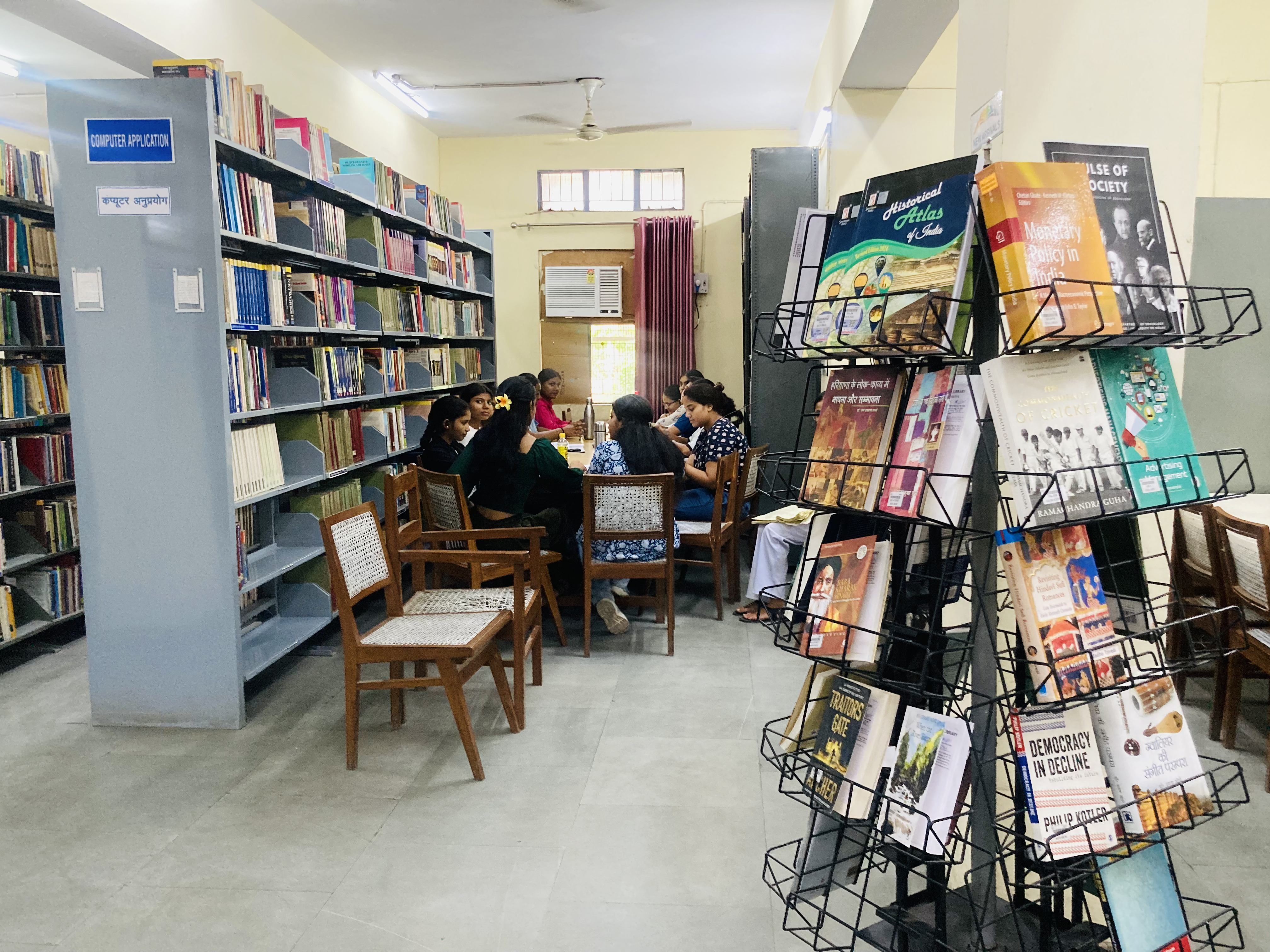 Collection: The library holds over 92,000 books, including Book Bank and Student Aid Fund resources. It subscribes to 14+ newspapers and 70+ journals and magazines, supporting a wide range of disciplines, particularly Humanities, Social Sciences, Commerce, Psychology, Journalism, and Home Science. The collection is regularly updated.