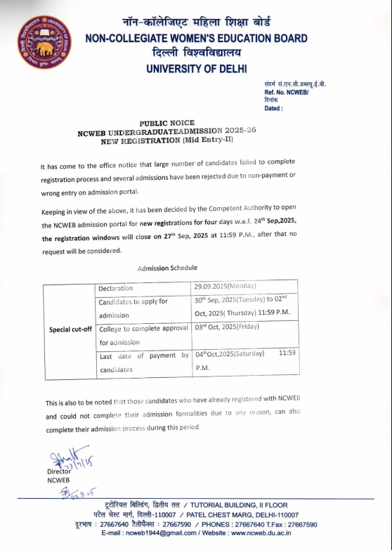 | 26 | Admission Open For NCWEB Fresh Applications for UG Admission 2025 -2026 | View |