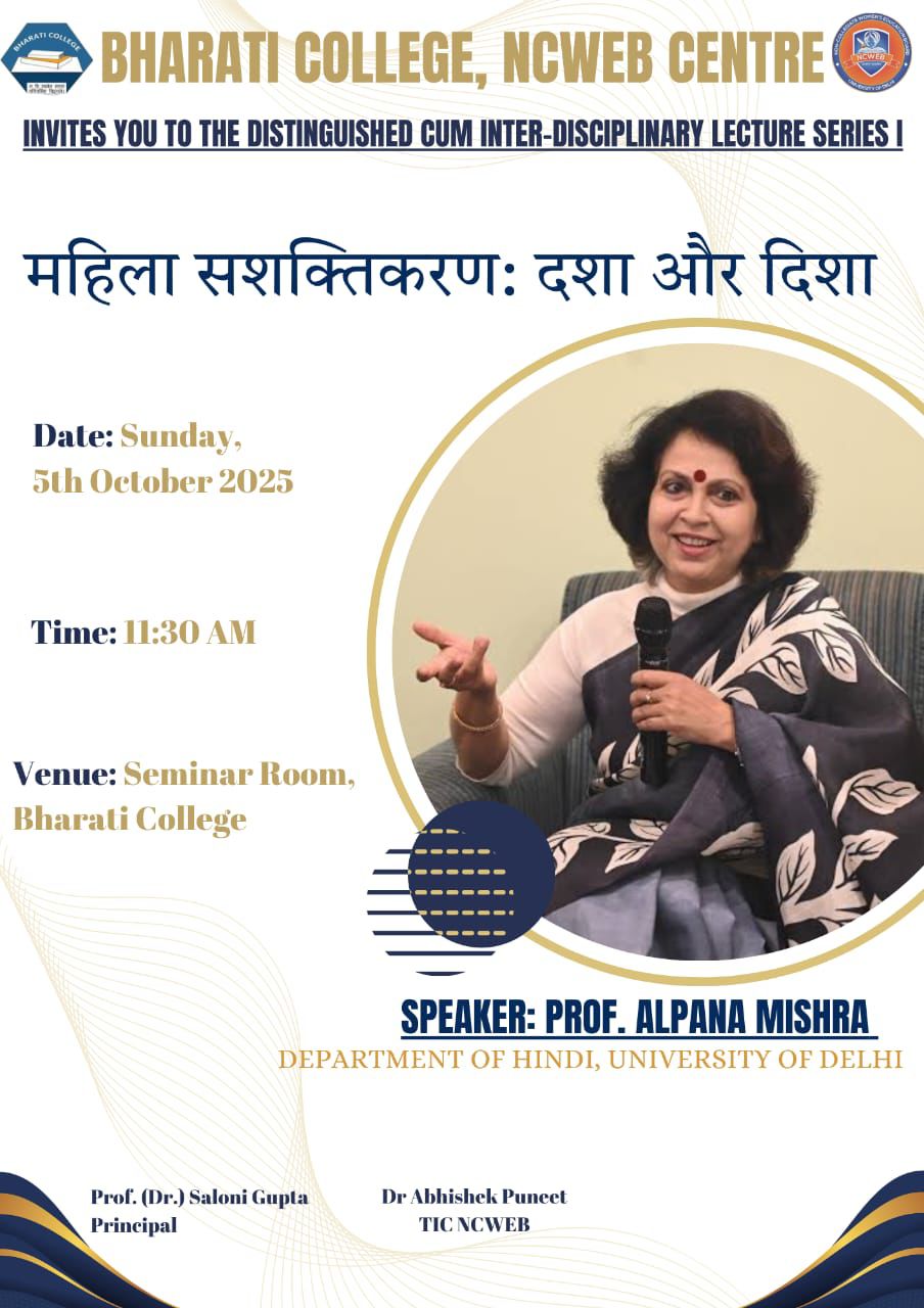 | 24 | NCWEB, Bharati College is organising a Distinguished Inter-Disciplinary Lecture Series I by Prof. Al | View |