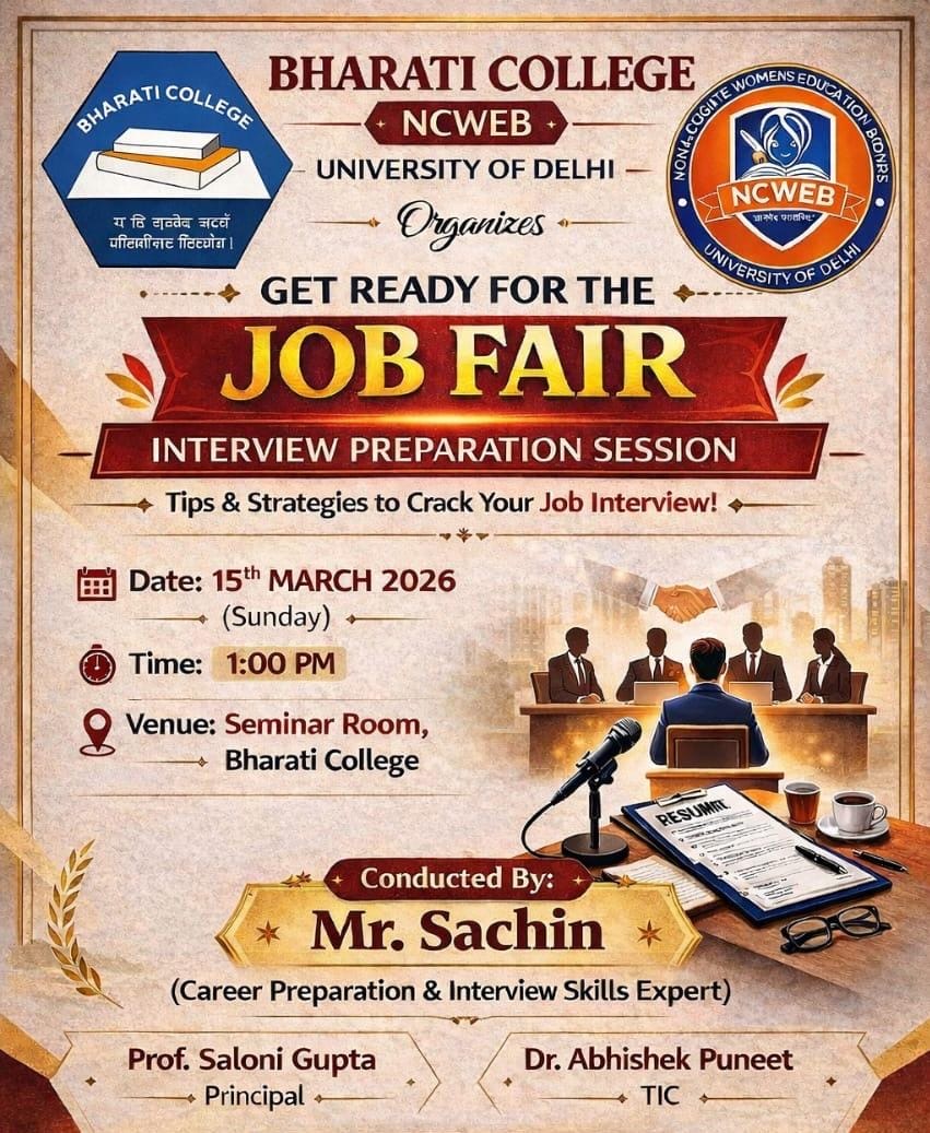 | 21 | NCWEB, Bharati College is organising organizing a Job Fair (Interview Preparation Session) on 15 Mar | View |