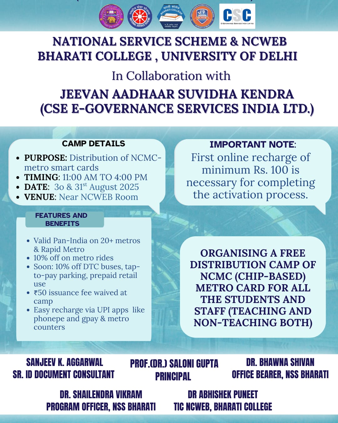 | 30 | Free NCMC Metro Card Distribution for NCWEB students & staff on 30-31 Aug, 11 AM-4 PM near NCWEB | View |