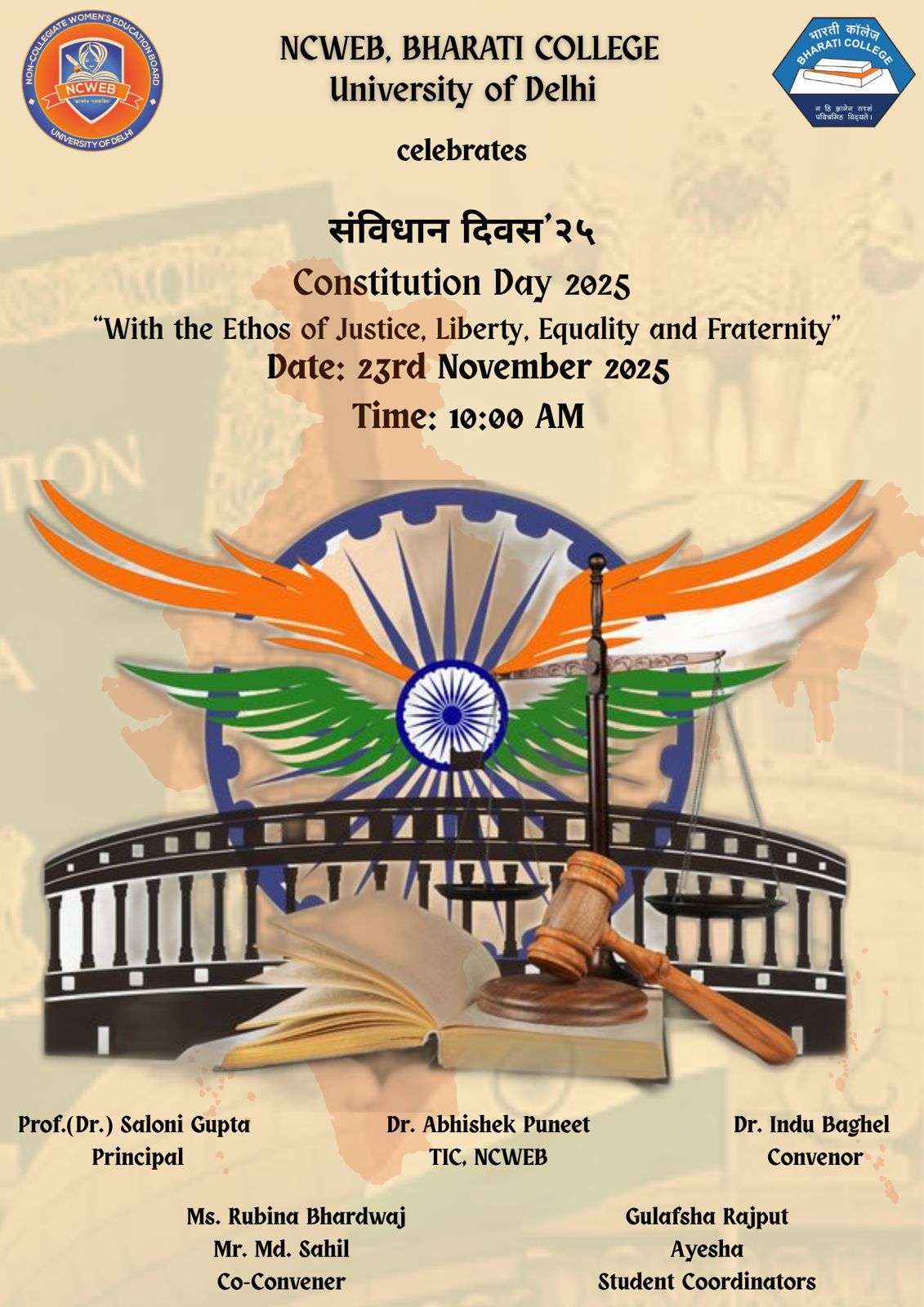| 27 | NCWEB भारती कॉलेज में हिंदी दिवस प्रतियोगिताओं का आयोजन — 21 सितम्बर 2025, प्रातः 11 बजे, सेमिनार कक्ष में | View |
