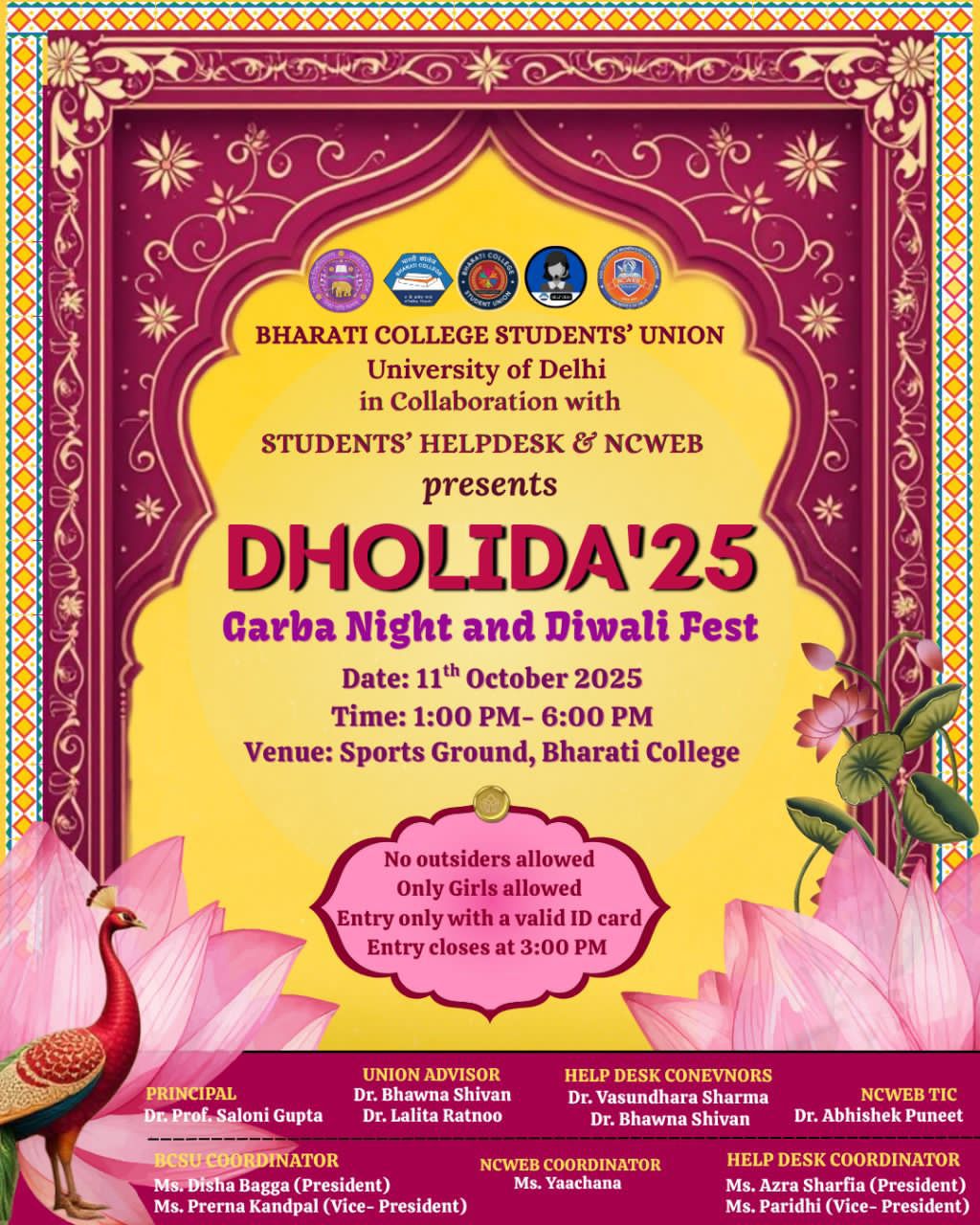| 23 | NCWEB Bharati College & BCSU Presents: Mehndi Haat at Saraswati Area on 9th October 2025 from 12:00 PM to 5:00 PM | View |