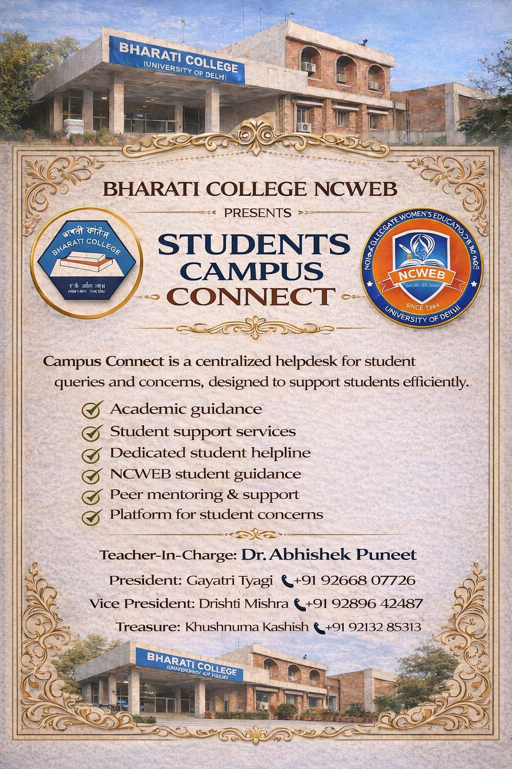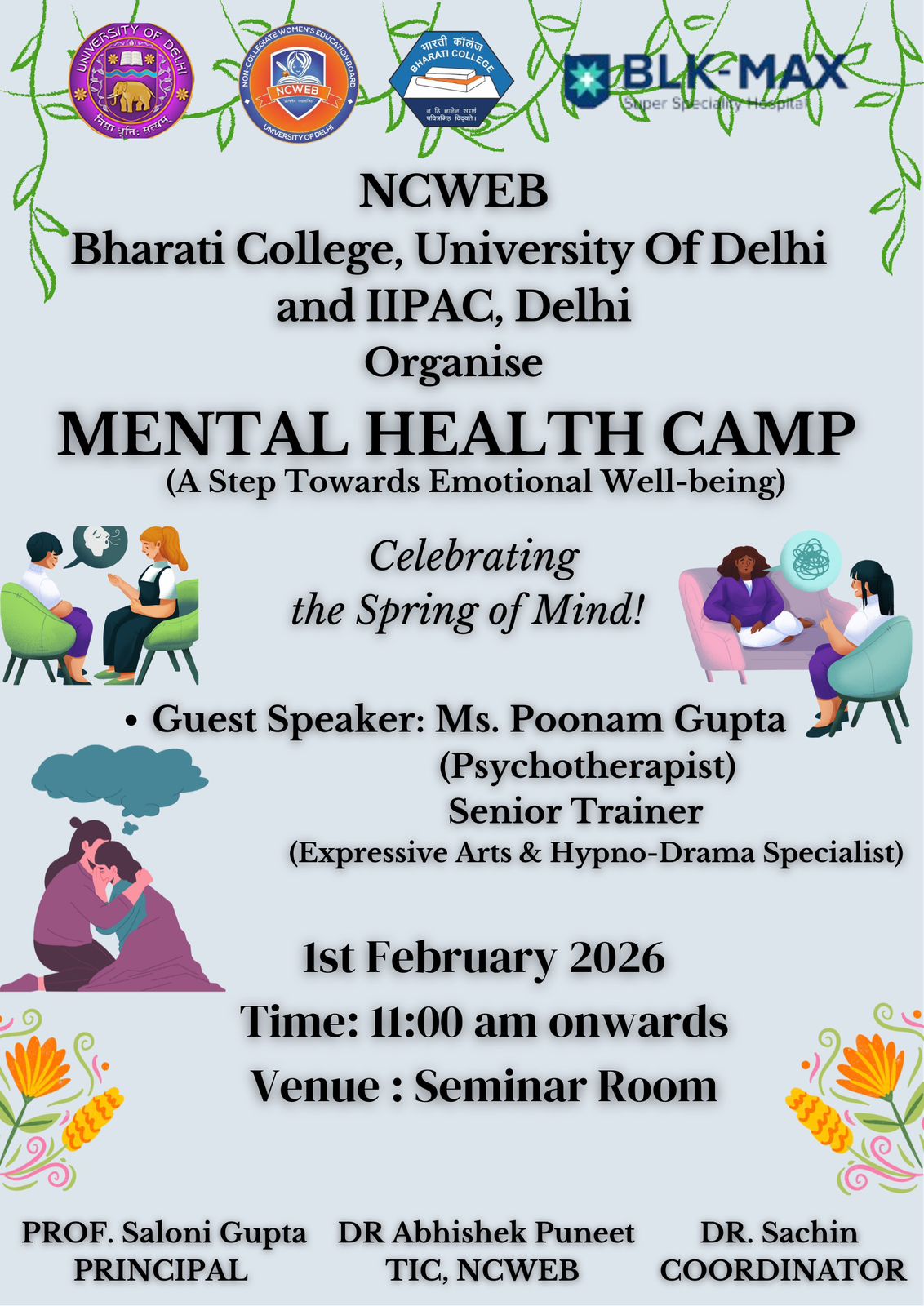 Bharati College (NCWEB) recognizes that mental well-being is an essential component of academic success, healthy relationships, and a positive learning environment. The Mental Health Counselling and Well-Being Initiative is designed to support students while also contributing to a healthier, more responsive college ecosystem.